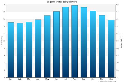 The coldest month, february has days with. Sea water temperature in la jolla cove is expected to drop to 67.6°f in the next 10 days. Be prepared for the day. Sea water temperature in la jolla shores is expected to drop to 67.8°f in the next 10 days.