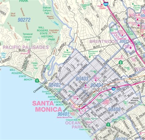Santa Monica California Zip Code Wall Map (Red Line Style) by MarketMAPS from www.mapsales.com